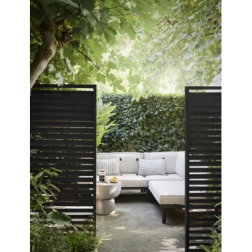 Het Jaloeziescherm is gemaakt van meerdere lamellen voor een shutter effect. Het lamellenscherm ook gekend als een shutterscherm is gemaakt van geïmpregneerd geschaafd vuren hout. Door het impregneren van het hout is dit scherm beter beschermd tegen weersomstandigheden. Dit scherm is ideaal te gebruiken voor bijvoorbeeld tussen een regulier tussenschermen voor of als afscheiding onder een overkapping. De totale dikte is ca. 8 cm en heeft hierdoor een robuuste uitstraling.